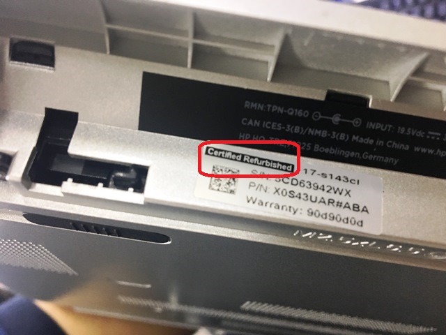 Informação de produto refurbished dentro da bateria de um notebook