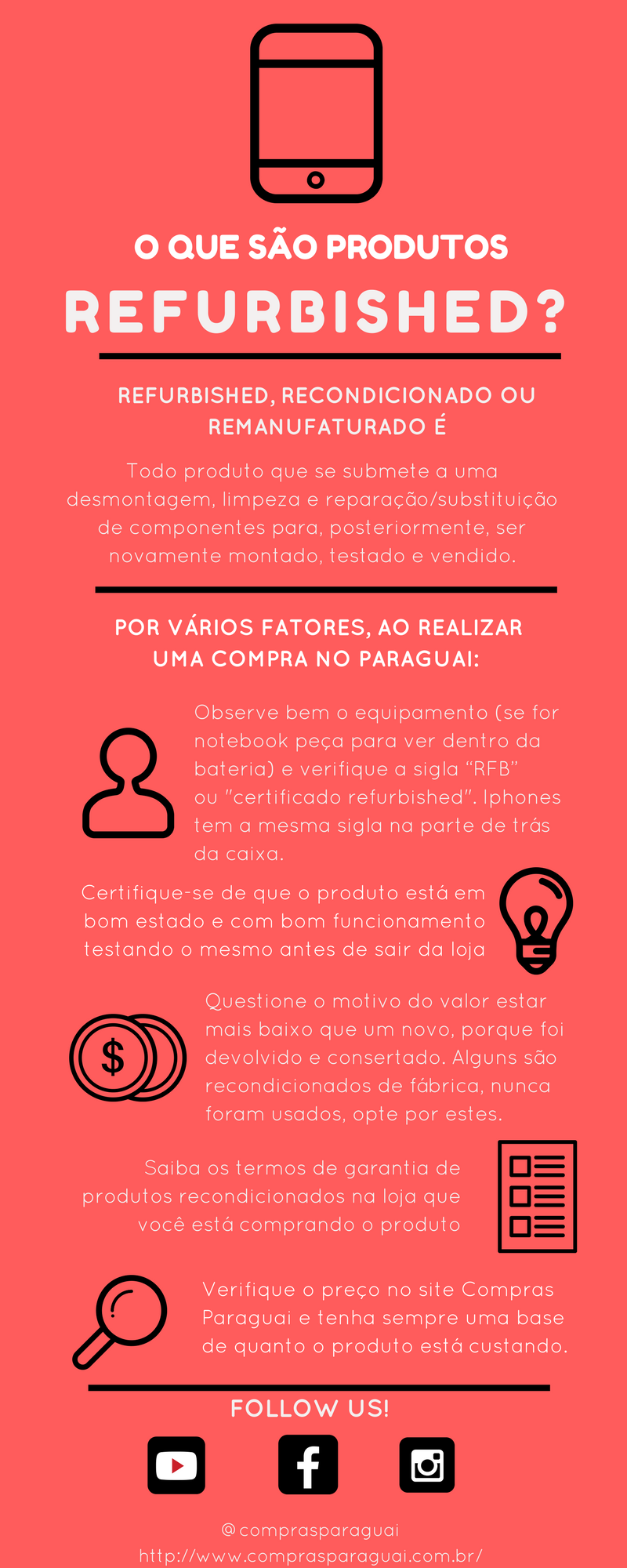 Uma boa dica para quem usa o site do Compras Paraguai para procurar preços de produtos é observar a variação dos preços e conferir se possui a sigla “RB” ou se está escrito a palavra “refurbished”.