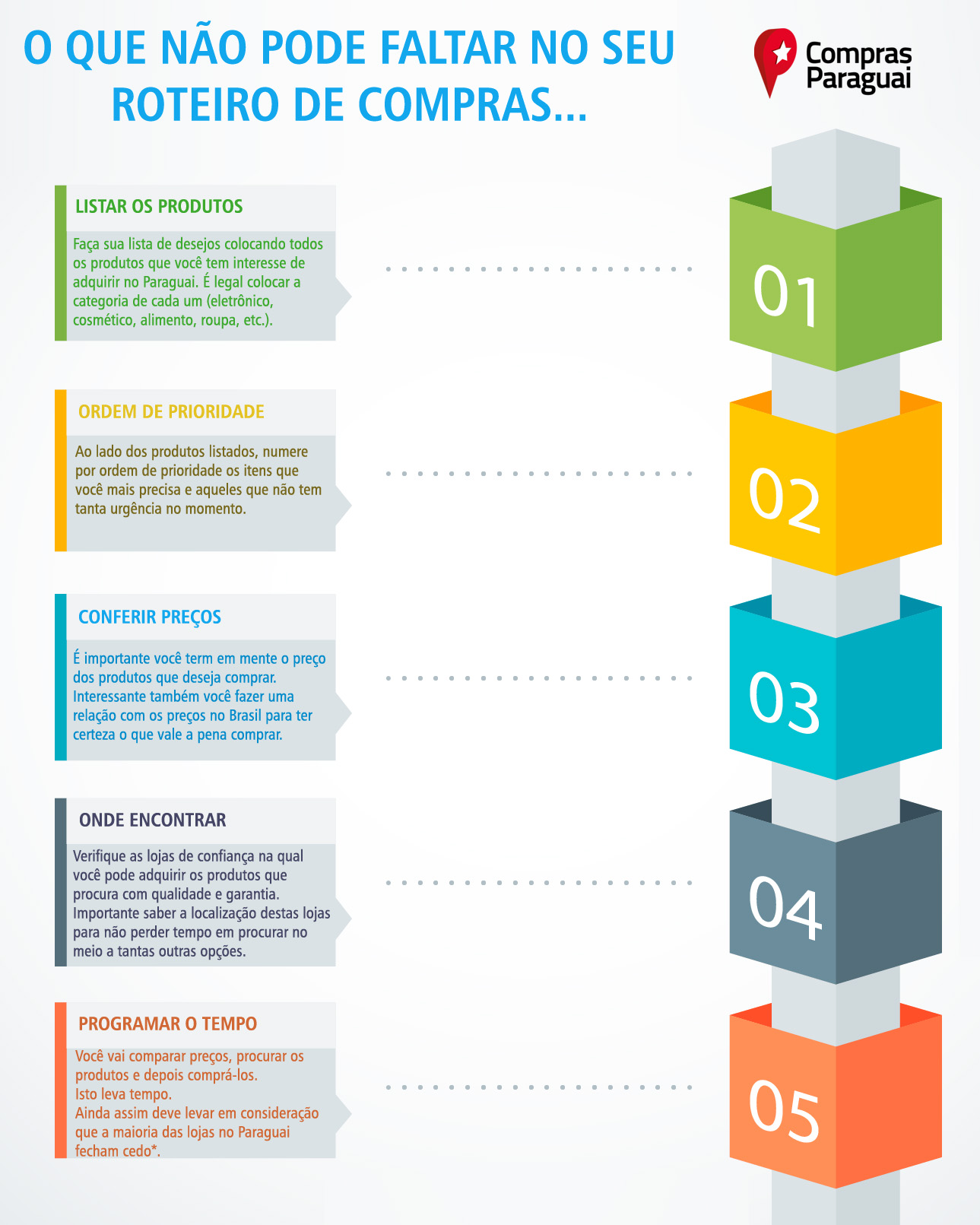 Confira neste post como fazer um roteiro de compras no Paraguai: 5 simples dicas para você não perder tempo nem a paciência.